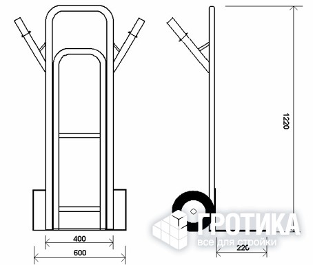 Габаритные размеры тележки (в х ш х г), мм